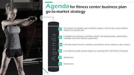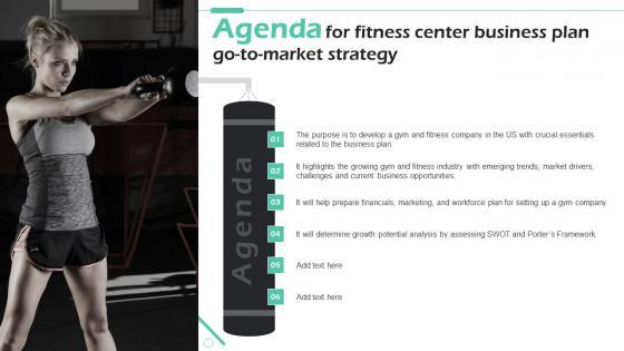 Want to ace your presentation in front of a live audience Our Agenda For Fitness Center Business Plan Go To Market Strategy Introduction Pdf can help you do that by engaging all the users towards you. Slidegeeks experts have put their efforts and expertise into creating these impeccable powerpoint presentations so that you can communicate your ideas clearly. Moreover, all the templates are customizable, and easy-to-edit and downloadable. Use these for both personal and commercial use. Our Agenda For Fitness Center Business Plan Go To Market Strategy Introduction Pdf are topically designed to provide an attractive backdrop to any subject. Use them to look like a presentation pro.
