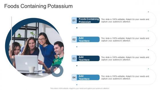 Introducing our well designed Foods Containing Potassium In Powerpoint And Google Slides Cpb This PowerPoint design presents information on topics like Foods Containing Potassium As it is predesigned it helps boost your confidence level. It also makes you a better presenter because of its high quality content and graphics. This PPT layout can be downloaded and used in different formats like PDF, PNG, and JPG. Not only this, it is available in both Standard Screen and Widescreen aspect ratios for your convenience. Therefore, click on the download button now to persuade and impress your audience. Our Foods Containing Potassium In Powerpoint And Google Slides Cpb are topically designed to provide an attractive backdrop to any subject. Use them to look like a presentation pro.