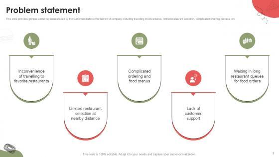 This slide provides glimpse about key issues faced by the customers before introduction of company including travelling inconvenience, limited restaurant selection, complicated ordering process, etc. Slidegeeks is here to make your presentations a breeze with Problem Statement Food Delivery Platform Investor Funding Elevator Pitch Deck PPT Presentation With our easy to use and customizable templates, you can focus on delivering your ideas rather than worrying about formatting. With a variety of designs to choose from, you are sure to find one that suits your needs. And with animations and unique photos, illustrations, and fonts, you can make your presentation pop. So whether you are giving a sales pitch or presenting to the board, make sure to check out Slidegeeks first This slide provides glimpse about key issues faced by the customers before introduction of company including travelling inconvenience, limited restaurant selection, complicated ordering process, etc.