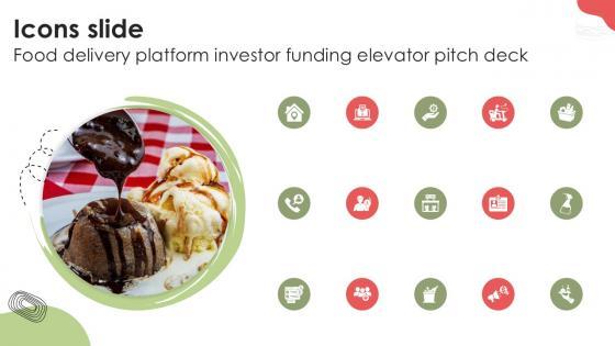 Introducing our well designed Icons Slide Food Delivery Platform Investor Funding Elevator Pitch Deck PPT Slides set of slides. The slide displays editable icons to enhance your visual presentation. The icons can be edited easily. So customize according to your business to achieve a creative edge. Download and share it with your audience. Our Icons Slide Food Delivery Platform Investor Funding Elevator Pitch Deck PPT Slides are topically designed to provide an attractive backdrop to any subject. Use them to look like a presentation pro.