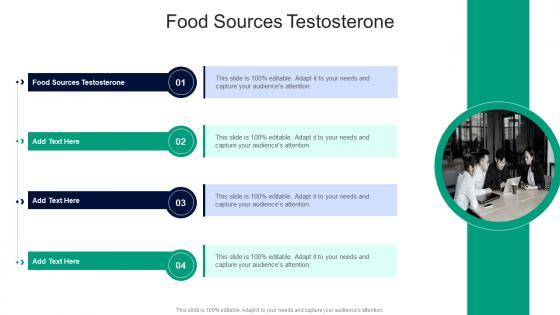 Introducing our well designed Food Sources Testosterone In Powerpoint And Google Slides Cpb. This PowerPoint design presents information on topics like Food Sources Testosterone. As it is predesigned it helps boost your confidence level. It also makes you a better presenter because of its high quality content and graphics. This PPT layout can be downloaded and used in different formats like PDF, PNG, and JPG. Not only this, it is available in both Standard Screen and Widescreen aspect ratios for your convenience. Therefore, click on the download button now to persuade and impress your audience. Our Food Sources Testosterone In Powerpoint And Google Slides Cpb are topically designed to provide an attractive backdrop to any subject. Use them to look like a presentation pro.