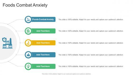 Introducing our well designed Foods Combat Anxiety In Powerpoint And Google Slides Cpb. This PowerPoint design presents information on topics like Foods Combat Anxiety. As it is predesigned it helps boost your confidence level. It also makes you a better presenter because of its high quality content and graphics. This PPT layout can be downloaded and used in different formats like PDF, PNG, and JPG. Not only this, it is available in both Standard Screen and Widescreen aspect ratios for your convenience. Therefore, click on the download button now to persuade and impress your audience. Our Foods Combat Anxiety In Powerpoint And Google Slides Cpb are topically designed to provide an attractive backdrop to any subject. Use them to look like a presentation pro.