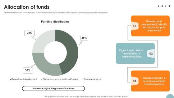 Mentioned slide provides information about asked investment allocation in business to enhance company working in supply chain management. Find a pre-designed and impeccable Allocation Of Funds Freight Management Solution Investor Funding Elevator Pitch Deck. The templates can ace your presentation without additional effort. You can download these easy-to-edit presentation templates to make your presentation stand out from others. So, what are you waiting for. Download the template from Slidegeeks today and give a unique touch to your presentation. Mentioned slide provides information about asked investment allocation in business to enhance company working in supply chain management.