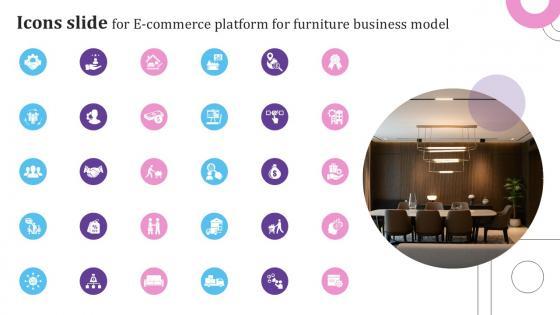 Presenting our innovatively structured Icons Slide For E Commerce Platform For Furniture PPT Presentation BMC SS V set of slides. The slides contain a hundred100 percent editable icons. You can replace these icons without any inconvenience. Therefore, pick this set of slides and create a striking presentation. Our Icons Slide For E Commerce Platform For Furniture PPT Presentation BMC SS V are topically designed to provide an attractive backdrop to any subject. Use them to look like a presentation pro.