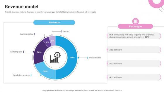 This slide showcases mediums of company to generate revenue using pie charts highlighting breakdown of channels with key insights. Find highly impressive Revenue Model E Commerce Platform For Furniture PPT Slide BMC SS V on Slidegeeks to deliver a meaningful presentation. You can save an ample amount of time using these presentation templates. No need to worry to prepare everything from scratch because Slidegeeks experts have already done a huge research and work for you. You need to download Revenue Model E Commerce Platform For Furniture PPT Slide BMC SS V for your upcoming presentation. All the presentation templates are 100 percent editable and you can change the color and personalize the content accordingly. Download now This slide showcases mediums of company to generate revenue using pie charts highlighting breakdown of channels with key insights.