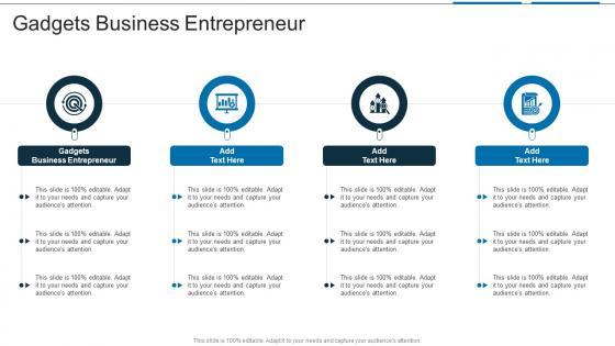 Introducing our well-designed Gadgets Business Entrepreneur In Powerpoint And Google Slides Cpb This PowerPoint design presents information on topics like Gadgets Business Entrepreneur As it is predesigned it helps boost your confidence level. It also makes you a better presenter because of its high-quality content and graphics. This PPT layout can be downloaded and used in different formats like PDF, PNG, and JPG. Not only this, it is available in both Standard Screen and Widescreen aspect ratios for your convenience. Therefore, click on the download button now to persuade and impress your audience. Our Gadgets Business Entrepreneur In Powerpoint And Google Slides Cpb are topically designed to provide an attractive backdrop to any subject. Use them to look like a presentation pro.