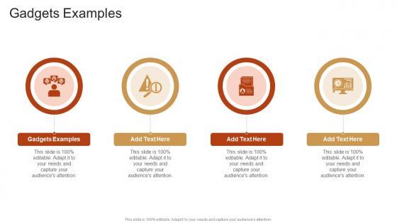 Introducing our well-designed Gadgets Examples In Powerpoint And Google Slides Cpb. This PowerPoint design presents information on topics like Gadgets Examples. As it is predesigned it helps boost your confidence level. It also makes you a better presenter because of its high-quality content and graphics. This PPT layout can be downloaded and used in different formats like PDF, PNG, and JPG. Not only this, it is available in both Standard Screen and Widescreen aspect ratios for your convenience. Therefore, click on the download button now to persuade and impress your audience. Our Gadgets Examples In Powerpoint And Google Slides Cpb are topically designed to provide an attractive backdrop to any subject. Use them to look like a presentation pro.