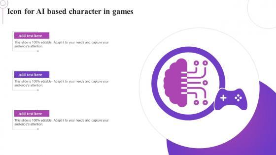 Pitch your topic with ease and precision using this Icon For AI Based Character In Games Themes Pdf This layout presents information on Icon For AI Based, Character Games It is also available for immediate download and adjustment. So, changes can be made in the color, design, graphics or any other component to create a unique layout. Our Icon For AI Based Character In Games Themes Pdf are topically designed to provide an attractive backdrop to any subject. Use them to look like a presentation pro.