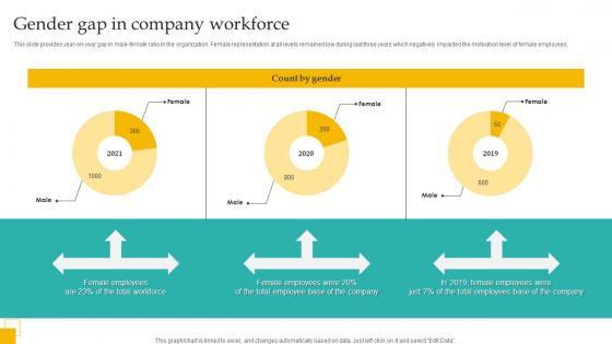 This slide provides year on year gap in male female ratio in the organization. Female representation at all levels remained low during last three years which negatively impacted the motivation level of female employees. Crafting an eye catching presentation has never been more straightforward. Let your presentation shine with this tasteful yet straightforward Gender Gap Company Workforce Administering Diversity And Inclusion At Workplace Structure Pdf template. It offers a minimalistic and classy look that is great for making a statement. The colors have been employed intelligently to add a bit of playfulness while still remaining professional. Construct the ideal Gender Gap Company Workforce Administering Diversity And Inclusion At Workplace Structure Pdf that effortlessly grabs the attention of your audience Begin now and be certain to wow your customers This slide provides year on year gap in male female ratio in the organization. Female representation at all levels remained low during last three years which negatively impacted the motivation level of female employees.