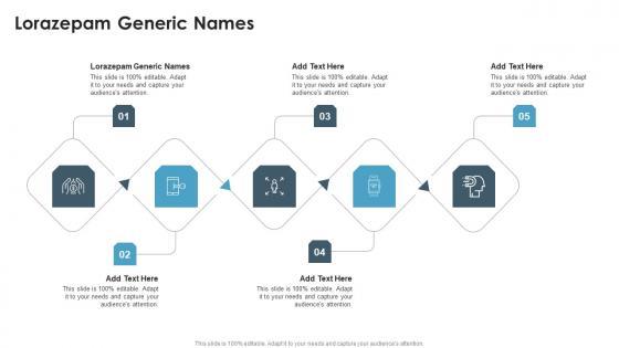 Introducing our well-designed Lorazepam Generic Names In Powerpoint And Google Slides Cpb. This PowerPoint design presents information on topics like Lorazepam Generic Names. As it is predesigned it helps boost your confidence level. It also makes you a better presenter because of its high-quality content and graphics. This PPT layout can be downloaded and used in different formats like PDF, PNG, and JPG. Not only this, it is available in both Standard Screen and Widescreen aspect ratios for your convenience. Therefore, click on the download button now to persuade and impress your audience. Our Lorazepam Generic Names In Powerpoint And Google Slides Cpb are topically designed to provide an attractive backdrop to any subject. Use them to look like a presentation pro.
