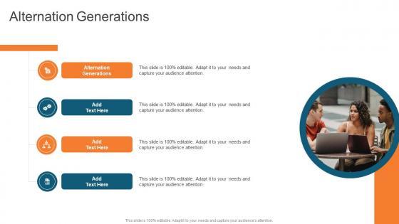 Introducing our well designed Alternation Generations In Powerpoint And Google Slides Cpb This PowerPoint design presents information on topics like Alternation Generations As it is predesigned it helps boost your confidence level. It also makes you a better presenter because of its high quality content and graphics. This PPT layout can be downloaded and used in different formats like PDF, PNG, and JPG. Not only this, it is available in both Standard Screen and Widescreen aspect ratios for your convenience. Therefore, click on the download button now to persuade and impress your audience. Our Alternation Generations In Powerpoint And Google Slides Cpb are topically designed to provide an attractive backdrop to any subject. Use them to look like a presentation pro.