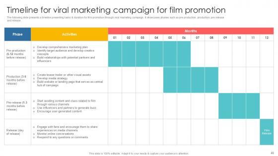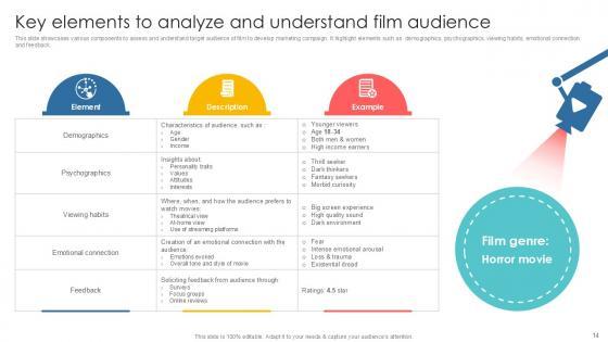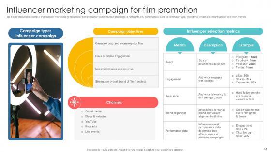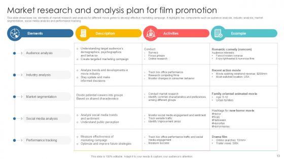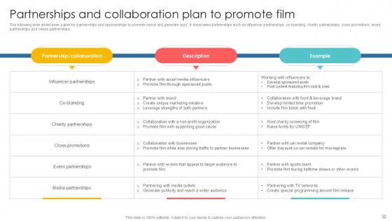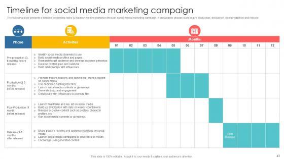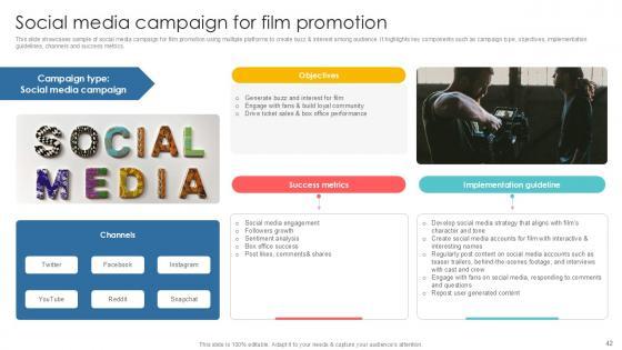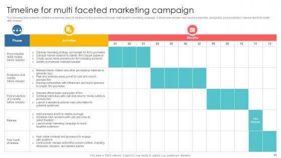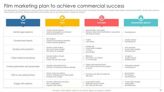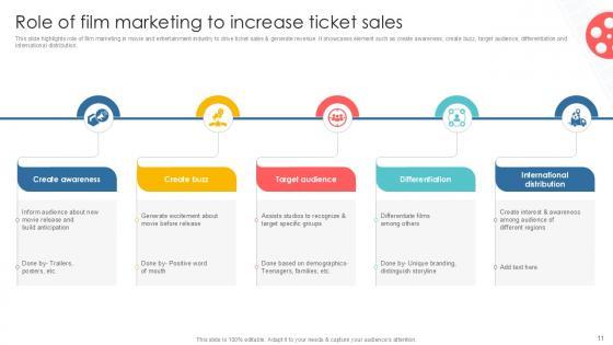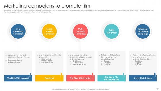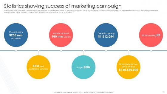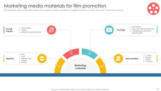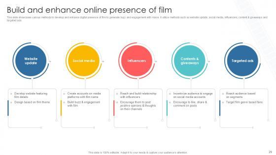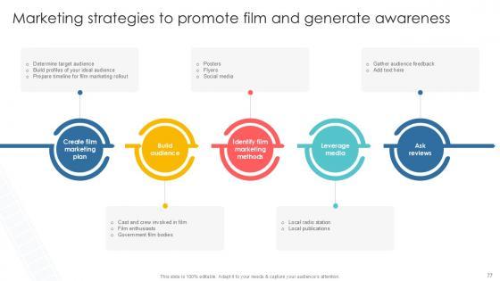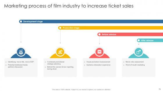 This eighty three-slide Film Promotion Plan To Generate Buzz Among Audience Ppt Sample Strategy CD V is your content ready tool to impress the stakeholders with your business planning and its manner of execution. Showcase your ideas and how you plan to make them real in detail with this PPT Template Bundle. The slides have the conceptual bandwidth to present the crucial aspects of your plan, such as funding, marketing, resource allocation, timeline, roadmap, and more. When you present your plans with this PPT Layout, the stakeholders are sure to come on board because you will be able to present a succinct, thought-out, winning project. Download this Complete Deck now to take control into your hands. The 100 percent customizable offer is just too good to be resisted. Our Film Promotion Plan To Generate Buzz Among Audience Ppt Sample Strategy CD V are topically designed to provide an attractive backdrop to any subject. Use them to look like a presentation pro.