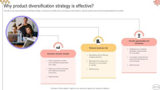 This slide covers need of product diversification strategy. It involves key benefits such as increases revenue streams, reduces business risks and provide opportunities for innovation. The Why Product Diversification Implementing Geographic Extension PPT Example Strategy SS V is a compilation of the most recent design trends as a series of slides. It is suitable for any subject or industry presentation, containing attractive visuals and photo spots for businesses to clearly express their messages. This template contains a variety of slides for the user to input data, such as structures to contrast two elements, bullet points, and slides for written information. Slidegeeks is prepared to create an impression. This slide covers need of product diversification strategy. It involves key benefits such as increases revenue streams, reduces business risks and provide opportunities for innovation.