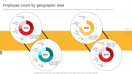 Mentioned slide provides information about company employee base split by geographical area. It includes geographical area such as Europe, Germany, north America, south America, and Asia pacific.Find highly impressive Employee Count By Geographic Area Automobile Development Company Profile CP SS V on Slidegeeks to deliver a meaningful presentation. You can save an ample amount of time using these presentation templates. No need to worry to prepare everything from scratch because Slidegeeks experts have already done a huge research and work for you. You need to download Employee Count By Geographic Area Automobile Development Company Profile CP SS V for your upcoming presentation. All the presentation templates are 100 percent editable and you can change the color and personalize the content accordingly. Download now Mentioned slide provides information about company employee base split by geographical area. It includes geographical area such as Europe, Germany, north America, south America, and Asia pacific.