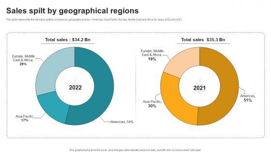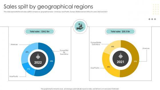 This slide represents the net sales split for company by geographical area Americas, Asia Pacific, Europe, Middle East and Africa for years 2022 and 2021.This Sales Spilt By Geographical Regions Multinational Conglomerate Company Profile CP SS V is perfect for any presentation, be it in front of clients or colleagues. It is a versatile and stylish solution for organizing your meetings. The Sales Spilt By Geographical Regions Multinational Conglomerate Company Profile CP SS V features a modern design for your presentation meetings. The adjustable and customizable slides provide unlimited possibilities for acing up your presentation. Slidegeeks has done all the homework before launching the product for you. So, do not wait, grab the presentation templates today This slide represents the net sales split for company by geographical area Americas, Asia Pacific, Europe, Middle East and Africa for years 2022 and 2021