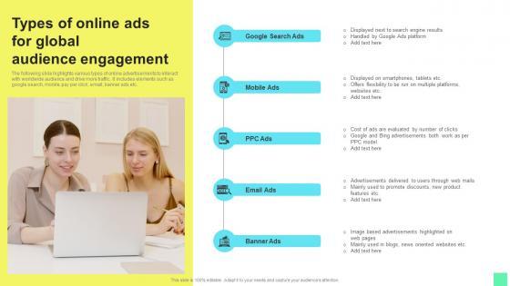 If your project calls for a presentation, then Slidegeeks is your go to partner because we have professionally designed, easy to edit templates that are perfect for any presentation. After downloading, you can easily edit Niche Marketing Guide To Target Specific Customer Groups Types Of Online Ads Global Audience Engagement Rules PDF and make the changes accordingly. You can rearrange slides or fill them with different images. Check out all the handy templates