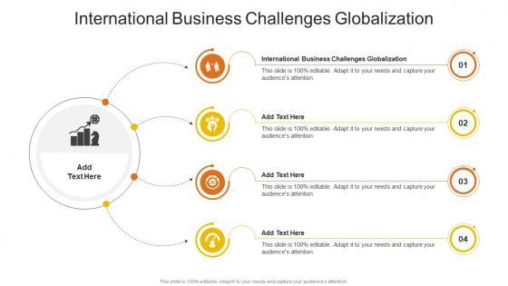 Presenting our innovatively designed set of slides titled International Business Challenges Globalization In Powerpoint And Google Slides Cpb. This completely editable PowerPoint graphic exhibits International Business Challenges Globalization that will help you convey the message impactfully. It can be accessed with Google Slides and is available in both standard screen and widescreen aspect ratios. Apart from this, you can download this well structured PowerPoint template design in different formats like PDF, JPG, and PNG. So, click the download button now to gain full access to this PPT design. Our International Business Challenges Globalization In Powerpoint And Google Slides Cpb are topically designed to provide an attractive backdrop to any subject. Use them to look like a presentation pro.