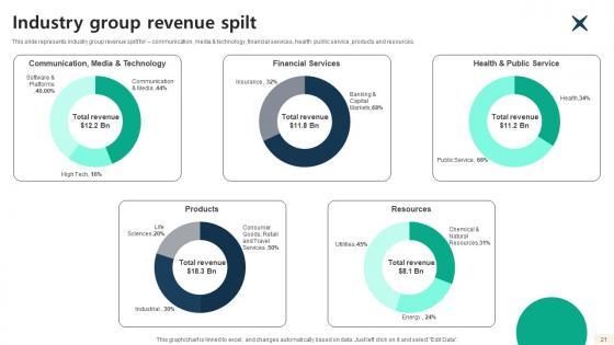 This slide represents industry group revenue spilt for communication, media and technology, financial services, health public service, products and resources.Formulating a presentation can take up a lot of effort and time, so the content and message should always be the primary focus. The visuals of the PowerPoint can enhance the presenters message, so our Industry Group Revenue Spilt Global Consulting And Technology Services Company Profile CP SS V was created to help save time. Instead of worrying about the design, the presenter can concentrate on the message while our designers work on creating the ideal templates for whatever situation is needed. Slidegeeks has experts for everything from amazing designs to valuable content, we have put everything into Industry Group Revenue Spilt Global Consulting And Technology Services Company Profile CP SS V. This slide represents industry group revenue spilt for communication, media and technology, financial services, health public service, products and resources.