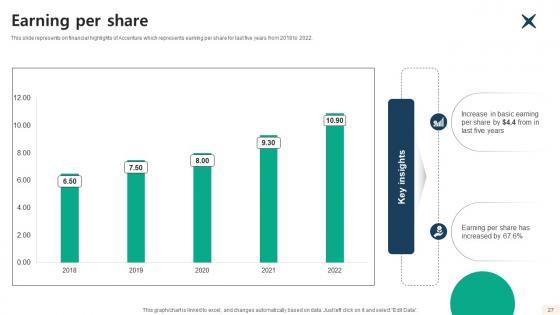 This slide represents on financial highlights of Accenture which represents earning per share for last five years from 2018 to 2022.Do you have an important presentation coming up Are you looking for something that will make your presentation stand out from the rest Look no further than Earning Per Share Global Consulting And Technology Services Company Profile CP SS V. With our professional designs, you can trust that your presentation will pop and make delivering it a smooth process. And with Slidegeeks, you can trust that your presentation will be unique and memorable. So why wait Grab Earning Per Share Global Consulting And Technology Services Company Profile CP SS V today and make your presentation stand out from the rest This slide represents on financial highlights of Accenture which represents earning per share for last five years from 2018 to 2022.