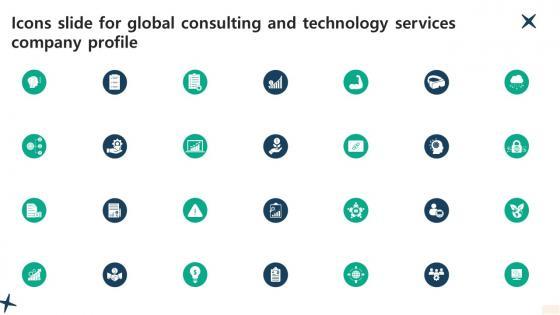 Presenting our innovatively structured Icons Slide For Global Consulting And Technology Services Company Profile CP SS V set of slides. The slides contain a hundred100 percent editable icons. You can replace these icons without any inconvenience. Therefore, pick this set of slides and create a striking presentation. Our Icons Slide For Global Consulting And Technology Services Company Profile CP SS V are topically designed to provide an attractive backdrop to any subject. Use them to look like a presentation pro.