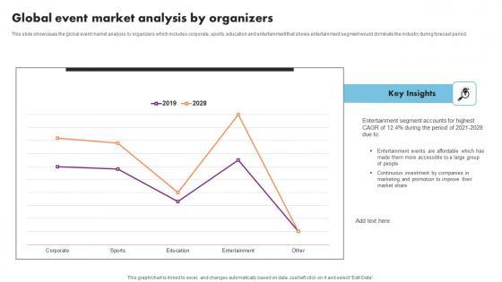 This slide showcases the global event market analysis by organizers which includes corporate, sports, education and entertainment that shows entertainment segment would dominate the industry during forecast period. Crafting an eye catching presentation has never been more straightforward. Let your presentation shine with this tasteful yet straightforward Global Event Market Analysis Event Management Business Plan Go To Market Strategy Structure Pdf template. It offers a minimalistic and classy look that is great for making a statement. The colors have been employed intelligently to add a bit of playfulness while still remaining professional. Construct the ideal Global Event Market Analysis Event Management Business Plan Go To Market Strategy Structure Pdf that effortlessly grabs the attention of your audience Begin now and be certain to wow your customers This slide showcases the global event market analysis by organizers which includes corporate, sports, education and entertainment that shows entertainment segment would dominate the industry during forecast period.
