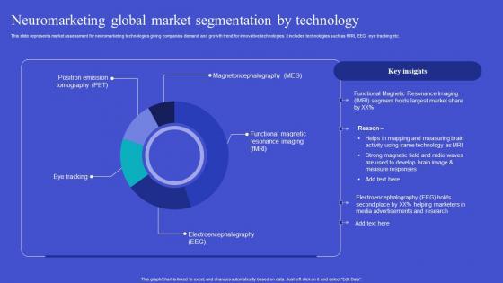 This slide represents market assessment for neuromarketing technologies giving companies demand and growth trend for innovative technologies. It includes technologies such as fMRI, EEG, eye tracking etc. Slidegeeks has constructed Neuromarketing Global Market Segmentation By Technology Driven Digital Marketing Diagrams Pdf after conducting extensive research and examination. These presentation templates are constantly being generated and modified based on user preferences and critiques from editors. Here, you will find the most attractive templates for a range of purposes while taking into account ratings and remarks from users regarding the content. This is an excellent jumping-off point to explore our content and will give new users an insight into our top-notch PowerPoint Templates. This slide represents market assessment for neuromarketing technologies giving companies demand and growth trend for innovative technologies. It includes technologies such as fMRI, EEG, eye tracking etc.