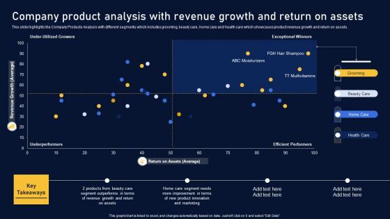 This slide highlights the Company Products Analysis with different segments which includes grooming, beauty care, home care and health care which showcases product revenue growth and return on assets. Whether you have daily or monthly meetings, a brilliant presentation is necessary. Customer Goods Production Company Product Analysis With Revenue Growth And Return Infographics PDF can be your best option for delivering a presentation. Represent everything in detail using Customer Goods Production Company Product Analysis With Revenue Growth And Return Infographics PDF and make yourself stand out in meetings. The template is versatile and follows a structure that will cater to your requirements. All the templates prepared by Slidegeeks are easy to download and edit. Our research experts have taken care of the corporate themes as well. So, give it a try and see the results.