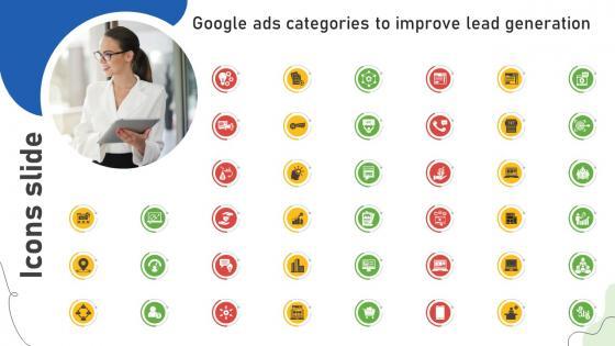 Take your projects to the next level with our ultimate collection of Icons Slide Google Ads Categories To Improve Lead Generation MKT SS V. Slidegeeks has designed a range of layouts that are perfect for representing task or activity duration, keeping track of all your deadlines at a glance. Tailor these designs to your exact needs and give them a truly corporate look with your own brand colors they will make your projects stand out from the rest Our Icons Slide Google Ads Categories To Improve Lead Generation MKT SS V are topically designed to provide an attractive backdrop to any subject. Use them to look like a presentation pro.
