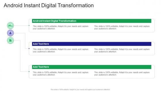 Presenting our innovatively designed set of slides titled Android Instant Digital Transformation In Powerpoint And Google Slides Cpb. This completely editable PowerPoint graphic exhibits Android Instant Digital Transformation that will help you convey the message impactfully. It can be accessed with Google Slides and is available in both standard screen and widescreen aspect ratios. Apart from this, you can download this well structured PowerPoint template design in different formats like PDF, JPG, and PNG. So, click the download button now to gain full access to this PPT design. Our Android Instant Digital Transformation In Powerpoint And Google Slides Cpb are topically designed to provide an attractive backdrop to any subject. Use them to look like a presentation pro.