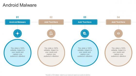 Introducing our well designed Android Malware In Powerpoint And Google Slides Cpb. This PowerPoint design presents information on topics like Android Malware. As it is predesigned it helps boost your confidence level. It also makes you a better presenter because of its high quality content and graphics. This PPT layout can be downloaded and used in different formats like PDF, PNG, and JPG. Not only this, it is available in both Standard Screen and Widescreen aspect ratios for your convenience. Therefore, click on the download button now to persuade and impress your audience. Our Android Malware In Powerpoint And Google Slides Cpb are topically designed to provide an attractive backdrop to any subject. Use them to look like a presentation pro.