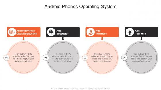Introducing our well-designed Android Phone Operating System In Powerpoint And Google Slides Cpb. This PowerPoint design presents information on topics like Android Phone Operating System. As it is predesigned it helps boost your confidence level. It also makes you a better presenter because of its high-quality content and graphics. This PPT layout can be downloaded and used in different formats like PDF, PNG, and JPG. Not only this, it is available in both Standard Screen and Widescreen aspect ratios for your convenience. Therefore, click on the download button now to persuade and impress your audience. Our Android Phone Operating System In Powerpoint And Google Slides Cpb are topically designed to provide an attractive backdrop to any subject. Use them to look like a presentation pro.