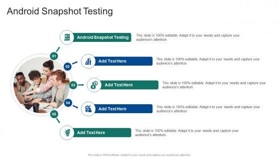Presenting our innovatively designed set of slides titled Android Snapshot Testing In Powerpoint And Google Slides Cpb. This completely editable PowerPoint graphic exhibits Android Snapshot Testing that will help you convey the message impactfully. It can be accessed with Google Slides and is available in both standard screen and widescreen aspect ratios. Apart from this, you can download this well structured PowerPoint template design in different formats like PDF, JPG, and PNG. So, click the download button now to gain full access to this PPT design. Our Android Snapshot Testing In Powerpoint And Google Slides Cpb are topically designed to provide an attractive backdrop to any subject. Use them to look like a presentation pro.