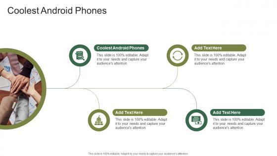 Introducing our well-designed Coolest Android Phones In Powerpoint And Google Slides Cpb. This PowerPoint design presents information on topics like Coolest Android Phones. As it is predesigned it helps boost your confidence level. It also makes you a better presenter because of its high-quality content and graphics. This PPT layout can be downloaded and used in different formats like PDF, PNG, and JPG. Not only this, it is available in both Standard Screen and Widescreen aspect ratios for your convenience. Therefore, click on the download button now to persuade and impress your audience. Our Coolest Android Phones In Powerpoint And Google Slides Cpb are topically designed to provide an attractive backdrop to any subject. Use them to look like a presentation pro.