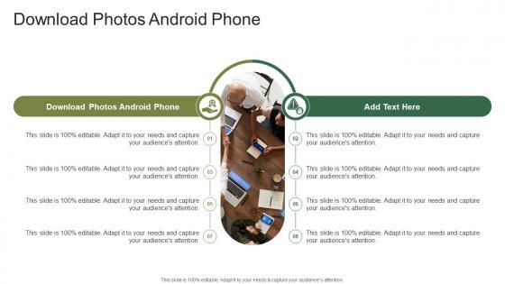Introducing our well-designed Download Photos Android Phone In Powerpoint And Google Slides Cpb. This PowerPoint design presents information on topics like Download Photos Android Phone. As it is predesigned it helps boost your confidence level. It also makes you a better presenter because of its high-quality content and graphics. This PPT layout can be downloaded and used in different formats like PDF, PNG, and JPG. Not only this, it is available in both Standard Screen and Widescreen aspect ratios for your convenience. Therefore, click on the download button now to persuade and impress your audience. Our Download Photos Android Phone In Powerpoint And Google Slides Cpb are topically designed to provide an attractive backdrop to any subject. Use them to look like a presentation pro.