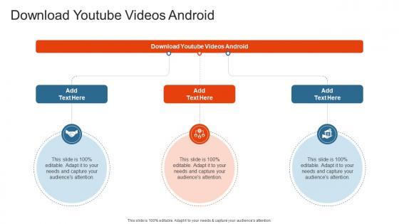 Introducing our well designed Download Youtube Videos Android In Powerpoint And Google Slides Cpb. This PowerPoint design presents information on topics like Download Youtube Videos Android. As it is predesigned it helps boost your confidence level. It also makes you a better presenter because of its high quality content and graphics. This PPT layout can be downloaded and used in different formats like PDF, PNG, and JPG. Not only this, it is available in both Standard Screen and Widescreen aspect ratios for your convenience. Therefore, click on the download button now to persuade and impress your audience. Our Download Youtube Videos Android In Powerpoint And Google Slides Cpb are topically designed to provide an attractive backdrop to any subject. Use them to look like a presentation pro.