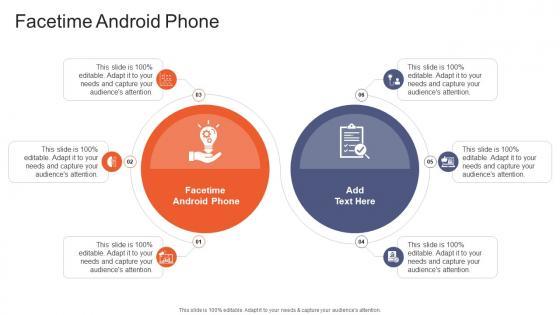 Presenting our innovatively-designed set of slides titled Facetime Android Phone In Powerpoint And Google Slides Cpb. This completely editable PowerPoint graphic exhibits Facetime Android Phone that will help you convey the message impactfully. It can be accessed with Google Slides and is available in both standard screen and widescreen aspect ratios. Apart from this, you can download this well-structured PowerPoint template design in different formats like PDF, JPG, and PNG. So, click the download button now to gain full access to this PPT design. Our Facetime Android Phone In Powerpoint And Google Slides Cpb are topically designed to provide an attractive backdrop to any subject. Use them to look like a presentation pro.