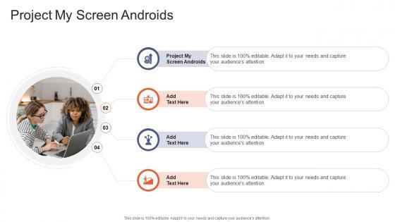 Introducing our well designed Project My Screen Androids In Powerpoint And Google Slides Cpb. This PowerPoint design presents information on topics like Project My Screen Androids. As it is predesigned it helps boost your confidence level. It also makes you a better presenter because of its high quality content and graphics. This PPT layout can be downloaded and used in different formats like PDF, PNG, and JPG. Not only this, it is available in both Standard Screen and Widescreen aspect ratios for your convenience. Therefore, click on the download button now to persuade and impress your audience. Our Project My Screen Androids In Powerpoint And Google Slides Cpb are topically designed to provide an attractive backdrop to any subject. Use them to look like a presentation pro.