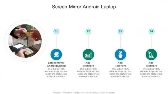 Introducing our well designed Screen Mirror Android Laptop In Powerpoint And Google Slides Cpb. This PowerPoint design presents information on topics like Screen Mirror Android Laptop. As it is predesigned it helps boost your confidence level. It also makes you a better presenter because of its high quality content and graphics. This PPT layout can be downloaded and used in different formats like PDF, PNG, and JPG. Not only this, it is available in both Standard Screen and Widescreen aspect ratios for your convenience. Therefore, click on the download button now to persuade and impress your audience. Our Screen Mirror Android Laptop In Powerpoint And Google Slides Cpb are topically designed to provide an attractive backdrop to any subject. Use them to look like a presentation pro.