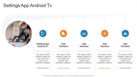 Introducing our well designed Settings App Android Tv In Powerpoint And Google Slides Cpb. This PowerPoint design presents information on topics like Settings App Android Tv. As it is predesigned it helps boost your confidence level. It also makes you a better presenter because of its high quality content and graphics. This PPT layout can be downloaded and used in different formats like PDF, PNG, and JPG. Not only this, it is available in both Standard Screen and Widescreen aspect ratios for your convenience. Therefore, click on the download button now to persuade and impress your audience. Our Settings App Android Tv In Powerpoint And Google Slides Cpb are topically designed to provide an attractive backdrop to any subject. Use them to look like a presentation pro.