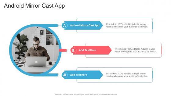 Introducing our well-designed Android Mirror Cast App In Powerpoint And Google Slides Cpb. This PowerPoint design presents information on topics like Android Mirror Cast App. As it is predesigned it helps boost your confidence level. It also makes you a better presenter because of its high-quality content and graphics. This PPT layout can be downloaded and used in different formats like PDF, PNG, and JPG. Not only this, it is available in both Standard Screen and Widescreen aspect ratios for your convenience. Therefore, click on the download button now to persuade and impress your audience. Our Android Mirror Cast App In Powerpoint And Google Slides Cpb are topically designed to provide an attractive backdrop to any subject. Use them to look like a presentation pro.