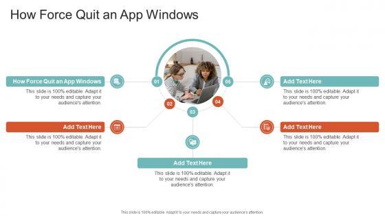 Introducing our well-designed How Force Quit An App Windows In Powerpoint And Google Slides Cpb This PowerPoint design presents information on topics like How Force Quit An App Windows As it is predesigned it helps boost your confidence level. It also makes you a better presenter because of its high-quality content and graphics. This PPT layout can be downloaded and used in different formats like PDF, PNG, and JPG. Not only this, it is available in both Standard Screen and Widescreen aspect ratios for your convenience. Therefore, click on the download button now to persuade and impress your audience. Our How Force Quit An App Windows In Powerpoint And Google Slides Cpb are topically designed to provide an attractive backdrop to any subject. Use them to look like a presentation pro.