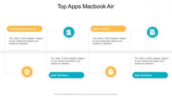 Introducing our well designed Top Apps Macbook Air In Powerpoint And Google Slides Cpb. This PowerPoint design presents information on topics like Top Apps Macbook Air. As it is predesigned it helps boost your confidence level. It also makes you a better presenter because of its high quality content and graphics. This PPT layout can be downloaded and used in different formats like PDF, PNG, and JPG. Not only this, it is available in both Standard Screen and Widescreen aspect ratios for your convenience. Therefore, click on the download button now to persuade and impress your audience. Our Top Apps Macbook Air In Powerpoint And Google Slides Cpb are topically designed to provide an attractive backdrop to any subject. Use them to look like a presentation pro.