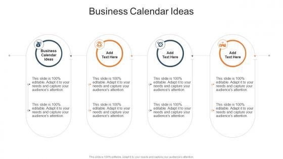 Introducing our well-designed Business Calendar Ideas In Powerpoint And Google Slides Cpb. This PowerPoint design presents information on topics like Business Calendar Ideas. As it is predesigned it helps boost your confidence level. It also makes you a better presenter because of its high-quality content and graphics. This PPT layout can be downloaded and used in different formats like PDF, PNG, and JPG. Not only this, it is available in both Standard Screen and Widescreen aspect ratios for your convenience. Therefore, click on the download button now to persuade and impress your audience. Our Business Calendar Ideas In Powerpoint And Google Slides Cpb are topically designed to provide an attractive backdrop to any subject. Use them to look like a presentation pro.