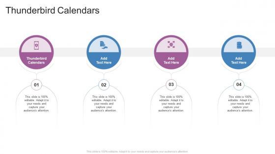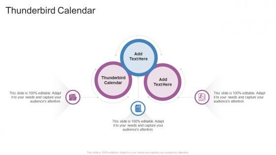 Introducing our well designed Thunderbird Calendar In Powerpoint And Google Slides Cpb. This PowerPoint design presents information on topics like Thunderbird Calendar. As it is predesigned it helps boost your confidence level. It also makes you a better presenter because of its high quality content and graphics. This PPT layout can be downloaded and used in different formats like PDF, PNG, and JPG. Not only this, it is available in both Standard Screen and Widescreen aspect ratios for your convenience. Therefore, click on the download button now to persuade and impress your audience. Our Thunderbird Calendar In Powerpoint And Google Slides Cpb are topically designed to provide an attractive backdrop to any subject. Use them to look like a presentation pro.