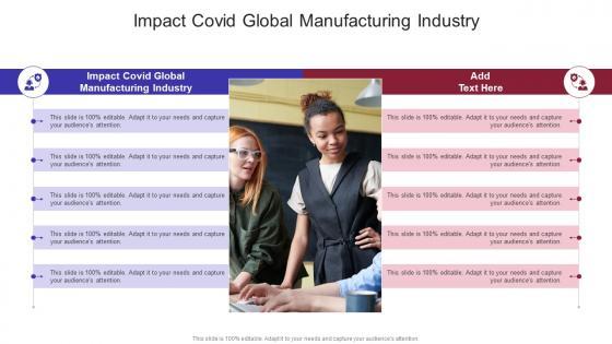 Presenting our innovatively-designed set of slides titled Impact Covid Global Manufacturing Industry In Powerpoint And Google Slides Cpb. This completely editable PowerPoint graphic exhibits Impact Covid Global Manufacturing Industry that will help you convey the message impactfully. It can be accessed with Google Slides and is available in both standard screen and widescreen aspect ratios. Apart from this, you can download this well-structured PowerPoint template design in different formats like PDF, JPG, and PNG. So, click the download button now to gain full access to this PPT design. Our Impact Covid Global Manufacturing Industry In Powerpoint And Google Slides Cpb are topically designed to provide an attractive backdrop to any subject. Use them to look like a presentation pro.