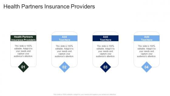 Presenting our innovatively designed set of slides titled Health Partners Insurance Providers In Powerpoint And Google Slides Cpb This completely editable PowerPoint graphic exhibits Health Partners Insurance Providers that will help you convey the message impactfully. It can be accessed with Google Slides and is available in both standard screen and widescreen aspect ratios. Apart from this, you can download this well structured PowerPoint template design in different formats like PDF, JPG, and PNG. So, click the download button now to gain full access to this PPT design. Our Health Partners Insurance Providers In Powerpoint And Google Slides Cpb are topically designed to provide an attractive backdrop to any subject. Use them to look like a presentation pro.