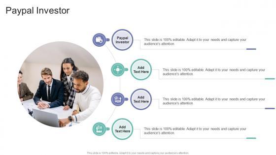 Presenting our innovatively designed set of slides titled Paypal Investor In Powerpoint And Google Slides Cpb. This completely editable PowerPoint graphic exhibits Paypal Investor that will help you convey the message impactfully. It can be accessed with Google Slides and is available in both standard screen and widescreen aspect ratios. Apart from this, you can download this well structured PowerPoint template design in different formats like PDF, JPG, and PNG. So, click the download button now to gain full access to this PPT design. Our Paypal Investor In Powerpoint And Google Slides Cpb are topically designed to provide an attractive backdrop to any subject. Use them to look like a presentation pro.