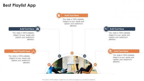 Introducing our well designed Best Playlist App In Powerpoint And Google Slides Cpb. This PowerPoint design presents information on topics like Best Playlist App. As it is predesigned it helps boost your confidence level. It also makes you a better presenter because of its high quality content and graphics. This PPT layout can be downloaded and used in different formats like PDF, PNG, and JPG. Not only this, it is available in both Standard Screen and Widescreen aspect ratios for your convenience. Therefore, click on the download button now to persuade and impress your audience. Our Best Playlist App In Powerpoint And Google Slides Cpb are topically designed to provide an attractive backdrop to any subject. Use them to look like a presentation pro.