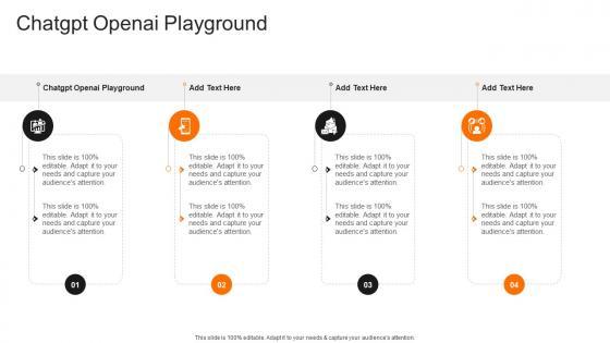 Presenting our innovatively designed set of slides titled Chatgpt Openai Playground In Powerpoint And Google Slides Cpb. This completely editable PowerPoint graphic exhibits Chatgpt Openai Playground that will help you convey the message impactfully. It can be accessed with Google Slides and is available in both standard screen and widescreen aspect ratios. Apart from this, you can download this well structured PowerPoint template design in different formats like PDF, JPG, and PNG. So, click the download button now to gain full access to this PPT design. Our Chatgpt Openai Playground In Powerpoint And Google Slides Cpb are topically designed to provide an attractive backdrop to any subject. Use them to look like a presentation pro.