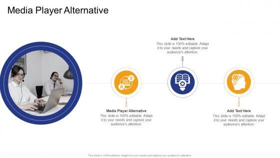 Introducing our well designed Media Player Alternative In Powerpoint And Google Slides Cpb. This PowerPoint design presents information on topics like Media Player Alternative. As it is predesigned it helps boost your confidence level. It also makes you a better presenter because of its high quality content and graphics. This PPT layout can be downloaded and used in different formats like PDF, PNG, and JPG. Not only this, it is available in both Standard Screen and Widescreen aspect ratios for your convenience. Therefore, click on the download button now to persuade and impress your audience. Our Media Player Alternative In Powerpoint And Google Slides Cpb are topically designed to provide an attractive backdrop to any subject. Use them to look like a presentation pro.